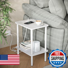 Apicizon 2 Tier End Table, Small Side Table with Charging Station, Boho Bedside