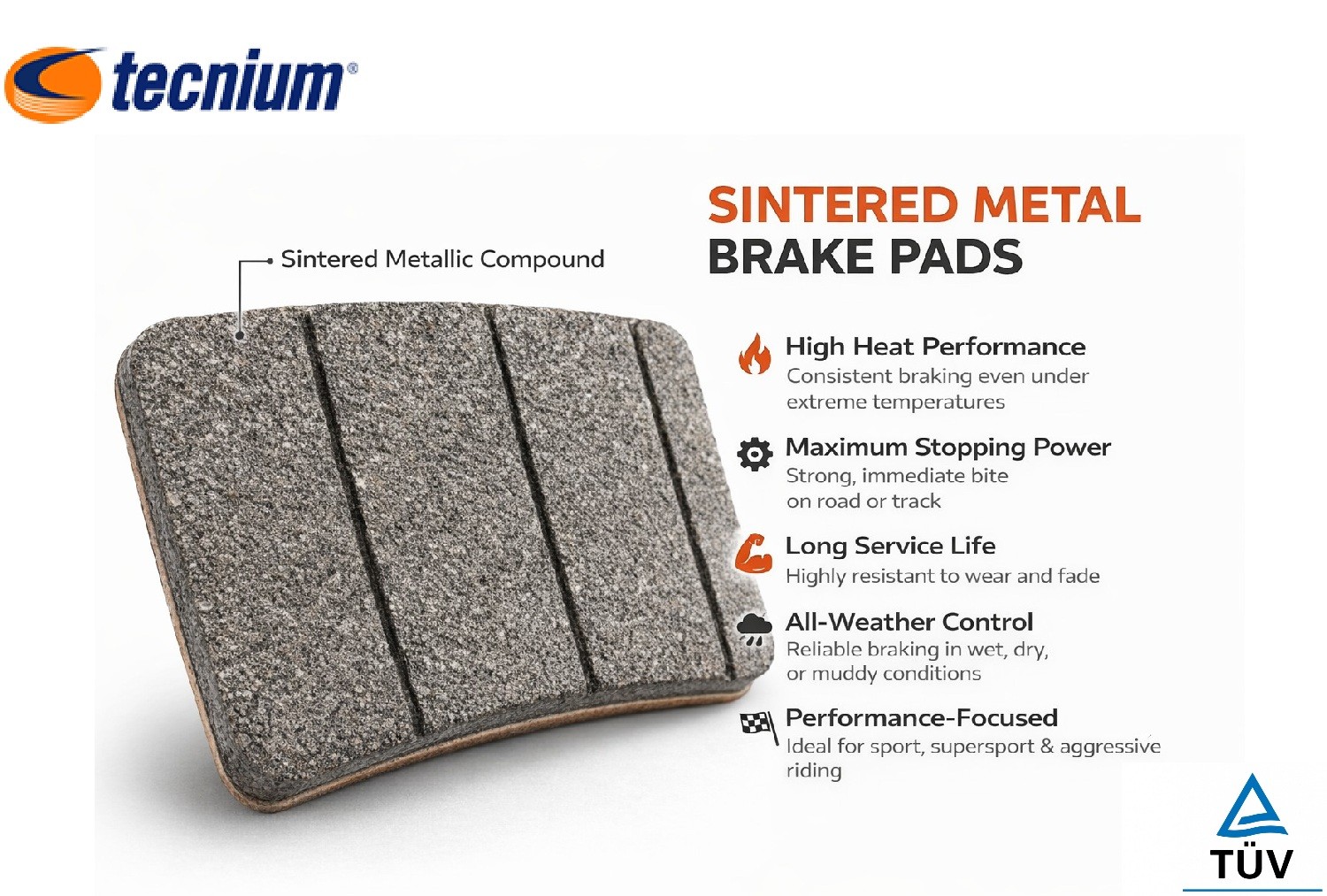 Please see advertised Danish Made Tecnium Motorcycle REAR Brake pads. Tecnium Brake Pads are high-performance sintered-metal pads, certified to ECE R90 homologation standards.
