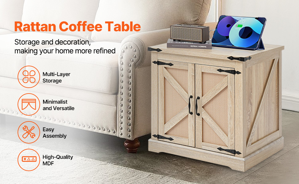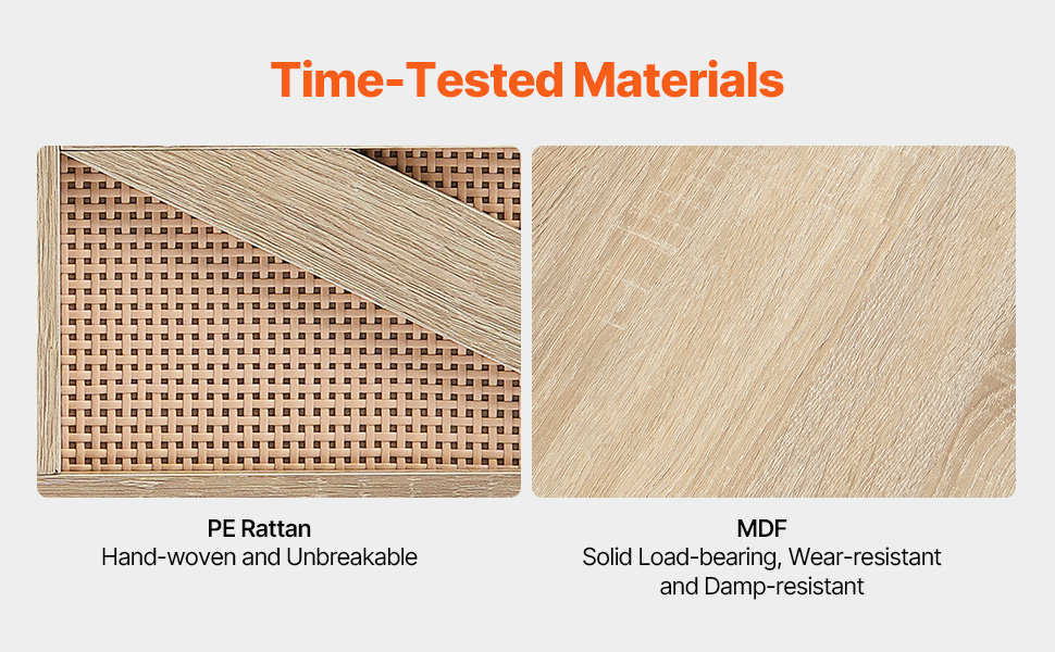 - High Quality and Stability: Our wood coffee table is crafted with premium MDF and PE rattan cabinet doors, providing excellent durability and stability. This table's sturdy base can support up to 80 lbs (36.3 kg) on the tabletop and 60 lbs (27.2 kg) on the bottom layer, ensuring it holds various items securely without wobbling.