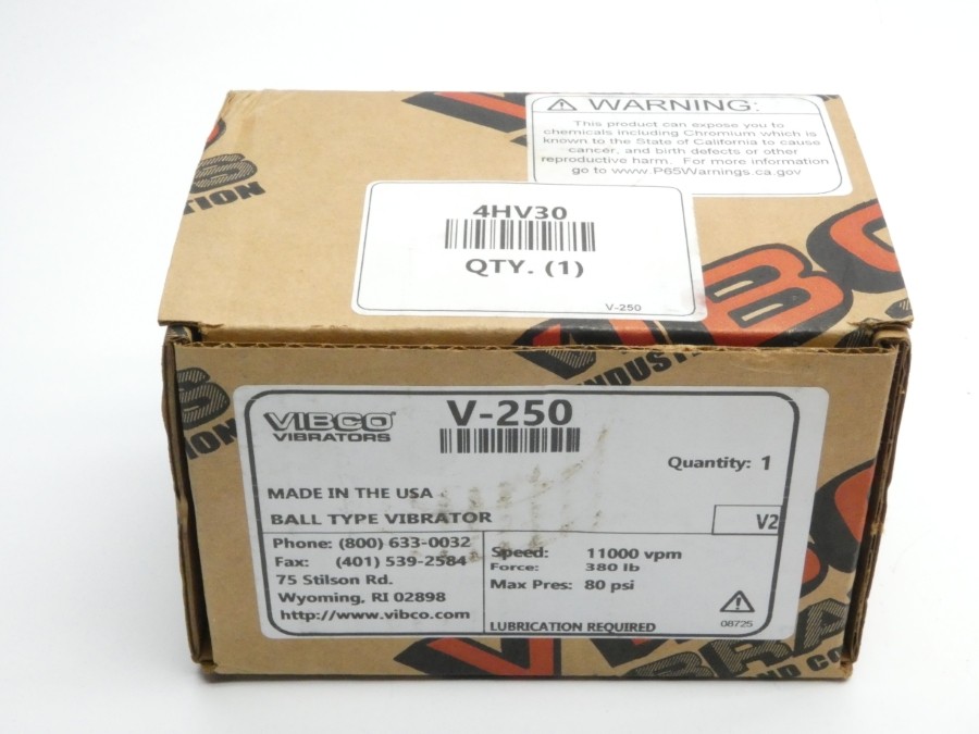 Vibco BV-250 Ball Type Pneumatic Vibrator, 380 LB, 11000 VPM, 80 PSI Max, New