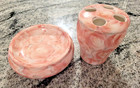 VTG 3 Piece Jlona Porcelain Pink Roses Bathroom Set: Soap Dish, Cup, Toothbrush