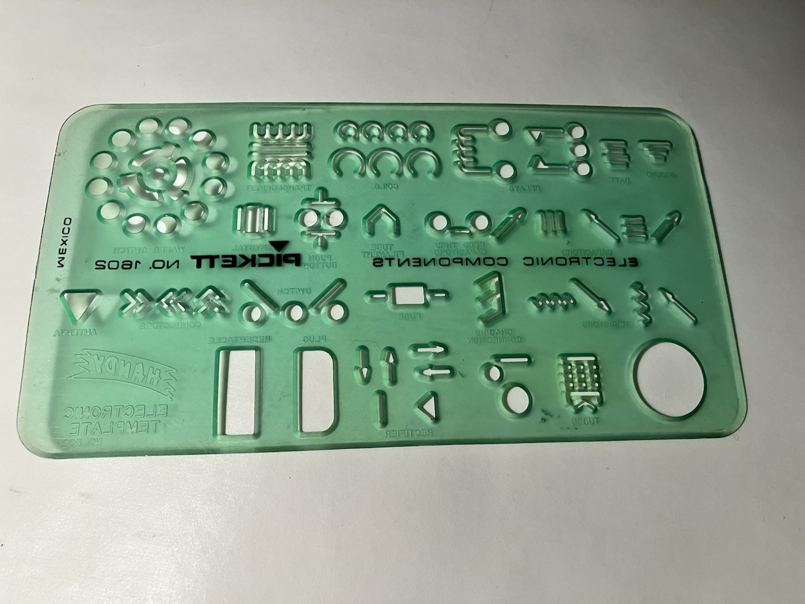The VTG Pickett 1602 Drafting Engineering Template is a high-quality tool designed for precision drawing and engineering of electronics components. Made by Pickett in Mexico, this template offers a convenient and efficient way to create detailed and accurate diagrams for electronic devices. With its durable construction and reliable brand reputation, this drafting template is a valuable resource for engineers, technicians, and hobbyists alike.