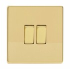 Varilight XDV2S Screwless Polished Brass 2 Gang 1 or 2 Way Rocker Light Switch