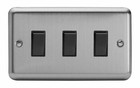 Varilight XS93B Classic Matt Chrome 3 Gang 1 or 2 Way Rocker Switch (Twin Plate)