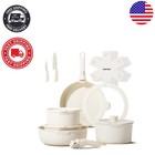 17 Piece Pots and Pans Set, Granite Nonstick Detachable Handle Cookware, Space..