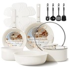 17-Piece Induction Nonstick Cookware Set with Detachable Handle - Beige Elegance