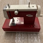Vintage Battery Operated Sewing Machine Red Wooden Case Foot Pedal Works