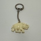 Vintage Elephant Keychain Carved Cream Plastic Figural Charm Key Ring MCM
