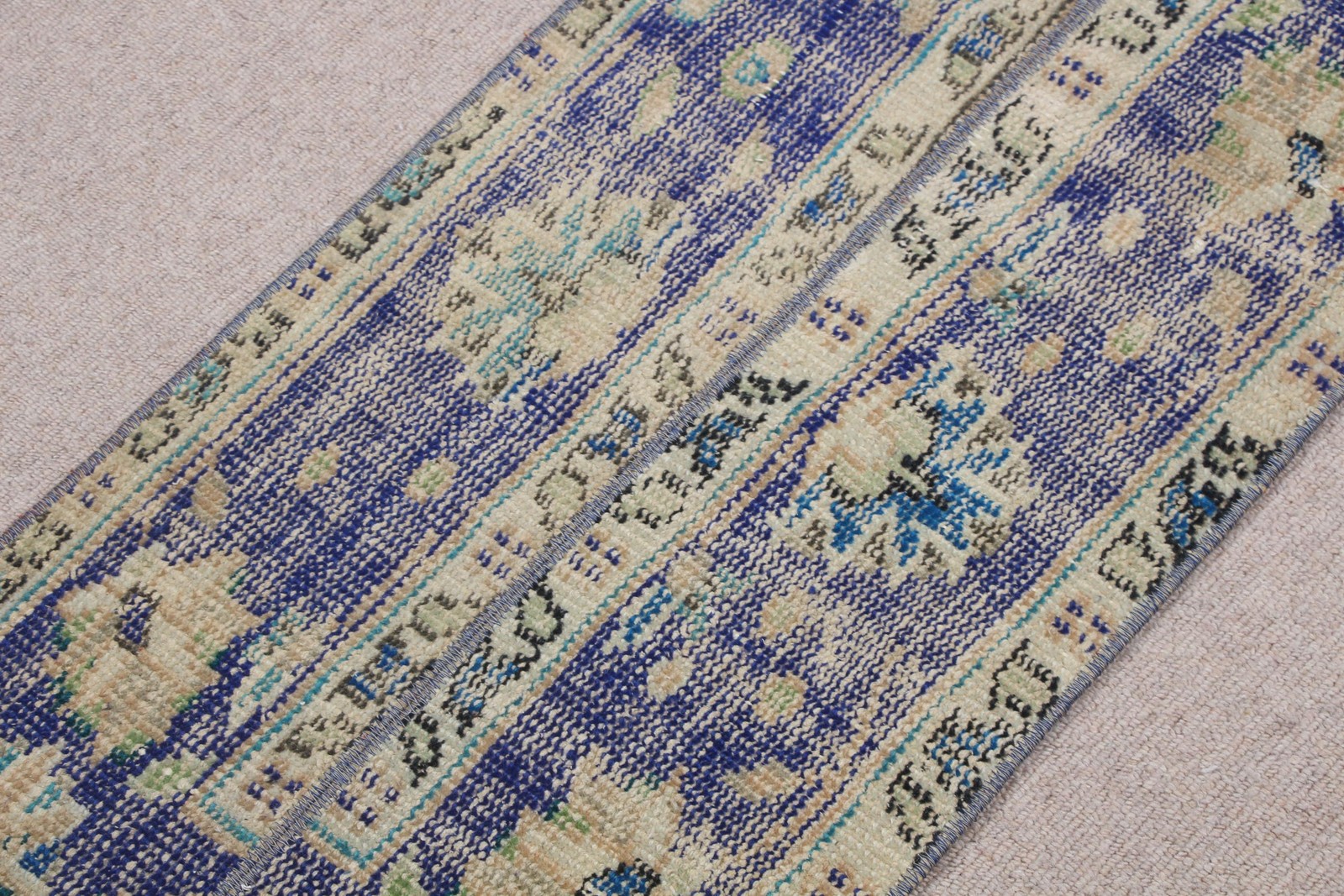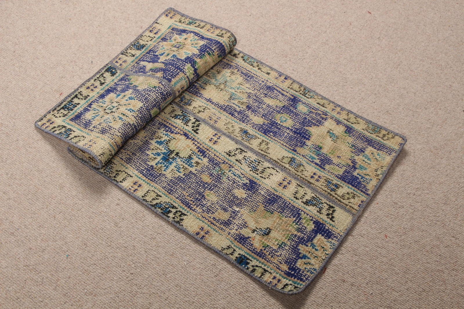 Vintage 1,5x3,1 ft Rug, Turkish Rug, Blue Floral Wool Rug