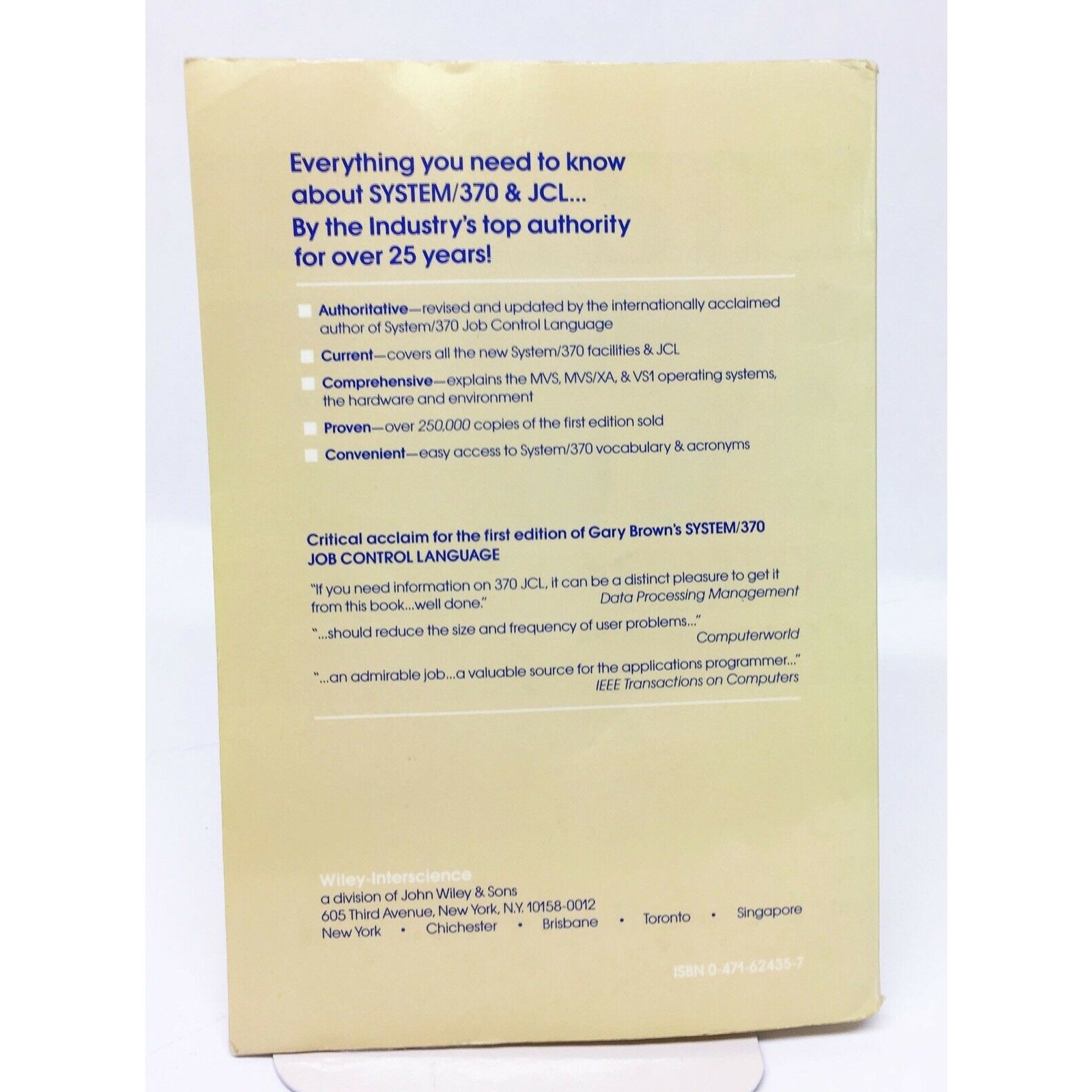Programmer’s reference to the venerable System 370 JCL - Explains the MVS, MVS/XA & VS1 operating systems.