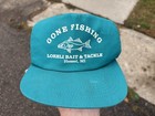Vintage 80s Gone Fishing Hat Aqua Teal Snap Back Cap Hessel Michigan Bait Tackle