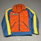 Vintage 70s Ski Puffer Jacket Mens Medium Ski Patrol Retro Colors Vibrant Blue