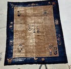 Antique 1920s Cobalt Blue Hand Made Chinese Art Deco Rug Traditional Patterns
