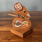 Vintage Kitsch Mouse Paper Note Recipe Holder Desk Carved Wood Folk Art Decor