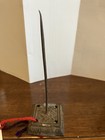 Vintage Metal Desk Letter Pick Bill Spike Ticket Holder Scrollwork Base