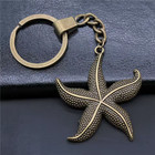 Gold Silver Vintage Big Starfish Pendant Keyring Holder Chain Keychain Ring Gift