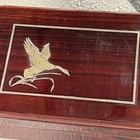 VTG Lacquer Jewelry Box With Brass Tone Duck Inlay Lined Includes Contents