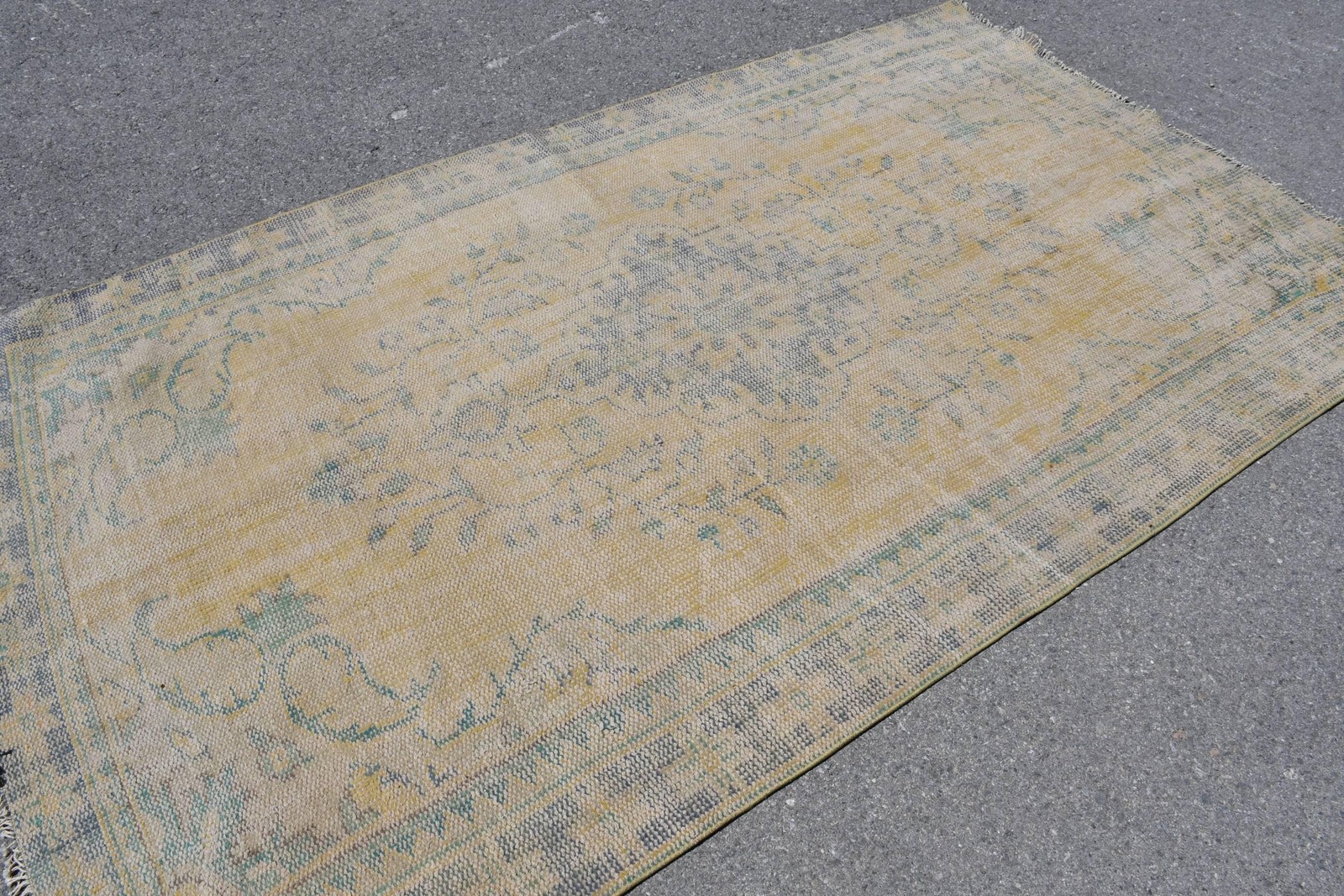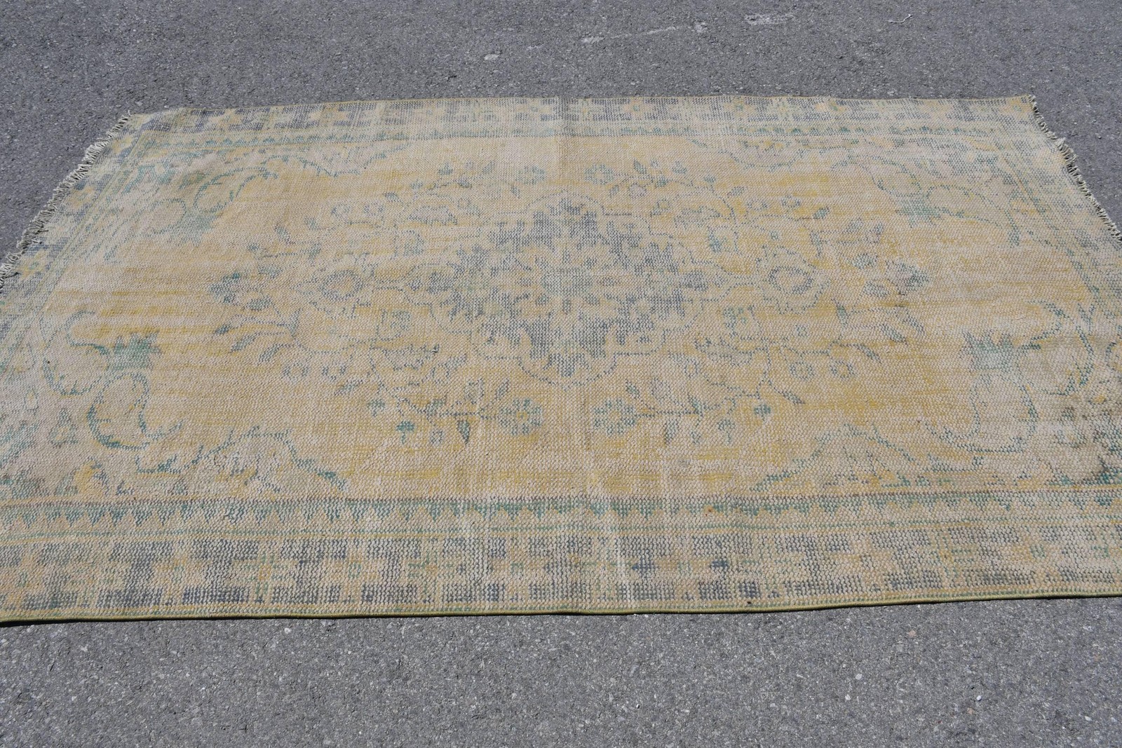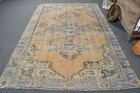 Vintage Large Rug, 5,1x8,7 ft Turkish Rug, Yellow Solid Wool Rug