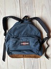 Vintage EASTPAK USA BackpackNavy Blue LEATHER BOTTOM DAYPACK Waterproof Nylon