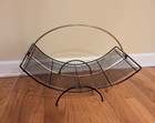 Vintage Mid Century Metal Magazine Rack-Cut Out Mesh Sides-Record Holder-MCM