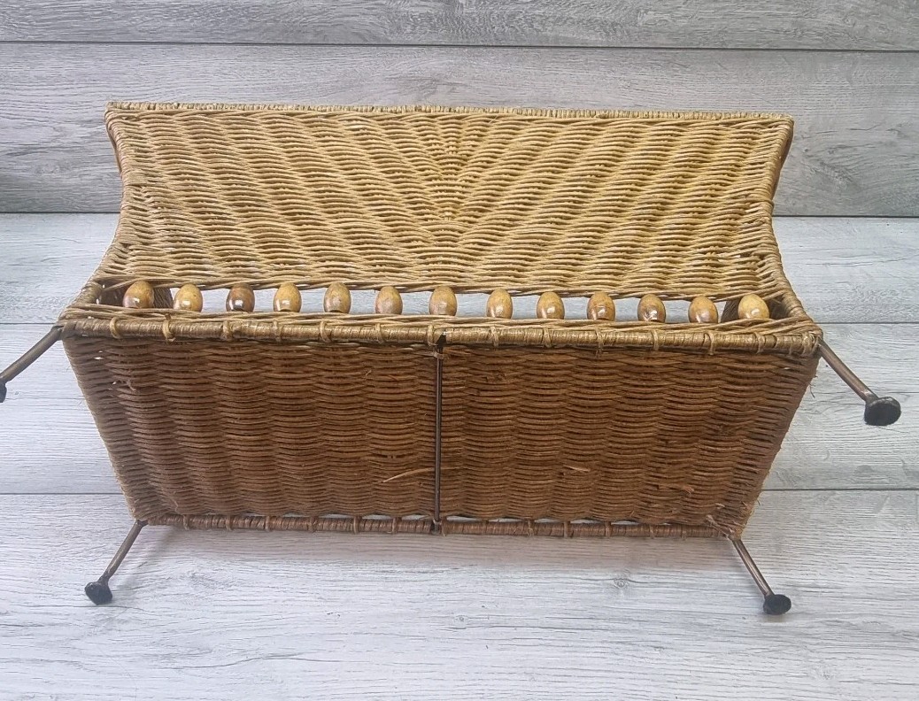 Vintage Mid Century Bamboo Wicker Rattan Magazine Rack - Heart Shape | Cottage