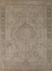 Tebriz Handmade Dining Room Area Rug 10x13 Vintage Muted Beige Wool Carpet