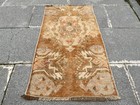 Vintage Oushak Rug 1.6x2.6 ft Small Turkish Mustard Gold Boho Tribal Mat