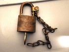 VINTAGE EAGLE LOCK CO. BRASS PADLOCK LOCK w/ CHAIN - NO KEY