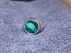 925 Sterling Silver Malachite Gem Ring Greek Pattern Men's Bold Vintage Style