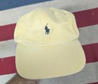 Vintage Polo Ralph Lauren YELLOW Cap Navy Pony Adjustable Leather Strap Back Hat