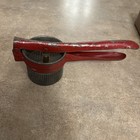 Vintage Red Metal Potato Ricer Masher Press Strainer Kitchen Utensil
