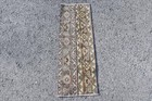 Turkish Vintage Small Rug 1,6x3,1 ft, Brown White Handmade Wool Rug