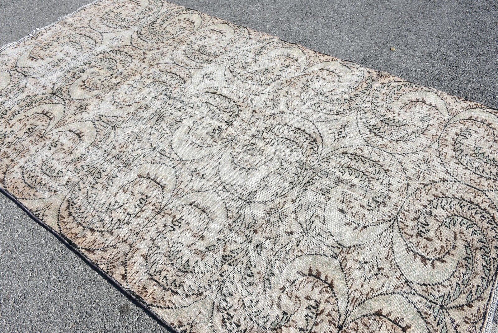 Vintage Rug, Large 5,6x9,6 ft Turkish Rug, White Brown Plants & trees Wool Rug