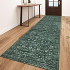 Floral Kitchen Runner Rug 2' x 10' Green Hallway Rug Area Rug Low Pile Faux-W...