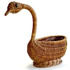 Vintage Rattan Swan Basket 10" Tall Wicker Planter Storage Boho Decor