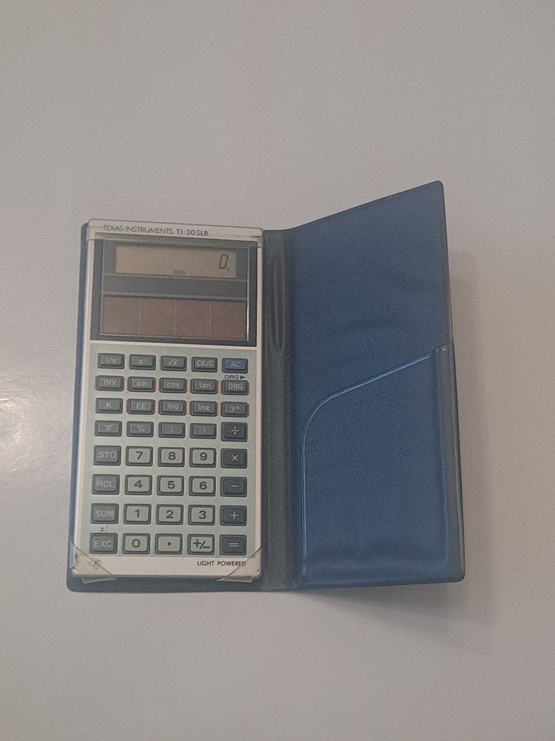 The Vintage Texas Instruments TI-30 SLR Solar Powered Calculator is a handheld scientific calculator with regular key size and display. It features solar power source and is model TI-30SLR. Made by Texas Instruments in Japan, this calculator is not only reliable but also environmentally friendly as it does not require batteries. The calculator comes with a cover to protect it when not in use, making it a durable and practical tool for various office tasks.