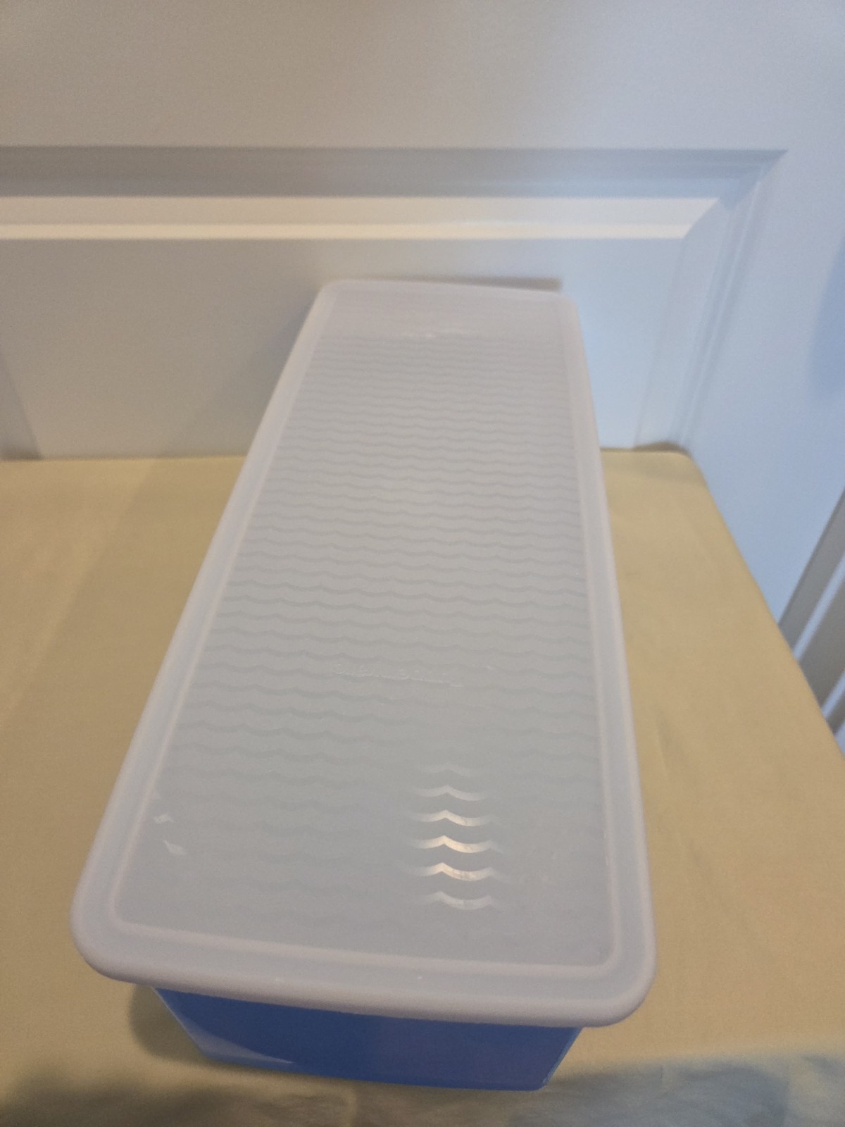Vintage Tupperware 14" X 5" Blue Fridge Ware Vented Storage Container/Lid.