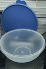 Tupperware LARGE mixing bowl 26 CUP blue lid salad dog food LOWER FLATTER RARE!
