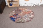 2,5x1,5 ft Turkish Vintage Rug, Round Rug, Blue Orange Oriental Wool Rug