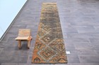 Vintage Turkish Runner Rug 2x10ft Wool Anatolian Handmade Hallway Oushak ORANGE