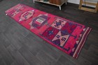 Vintage Turkish Runner Rug 3x12ft Wool Anatolian Handmade Hallway Oushak PINK