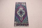 Vintage Small Rug 1,4x4,1 ft (42x125 cm), Turkish Green Bordered Wool Rug