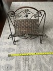 Vintage Antique Reed And Metal Magazine Rack