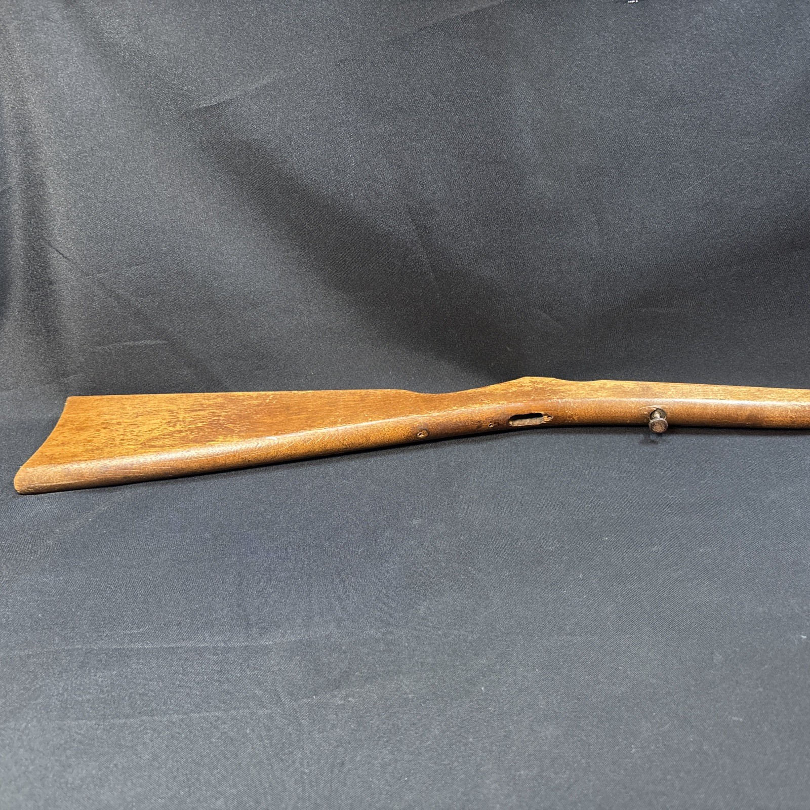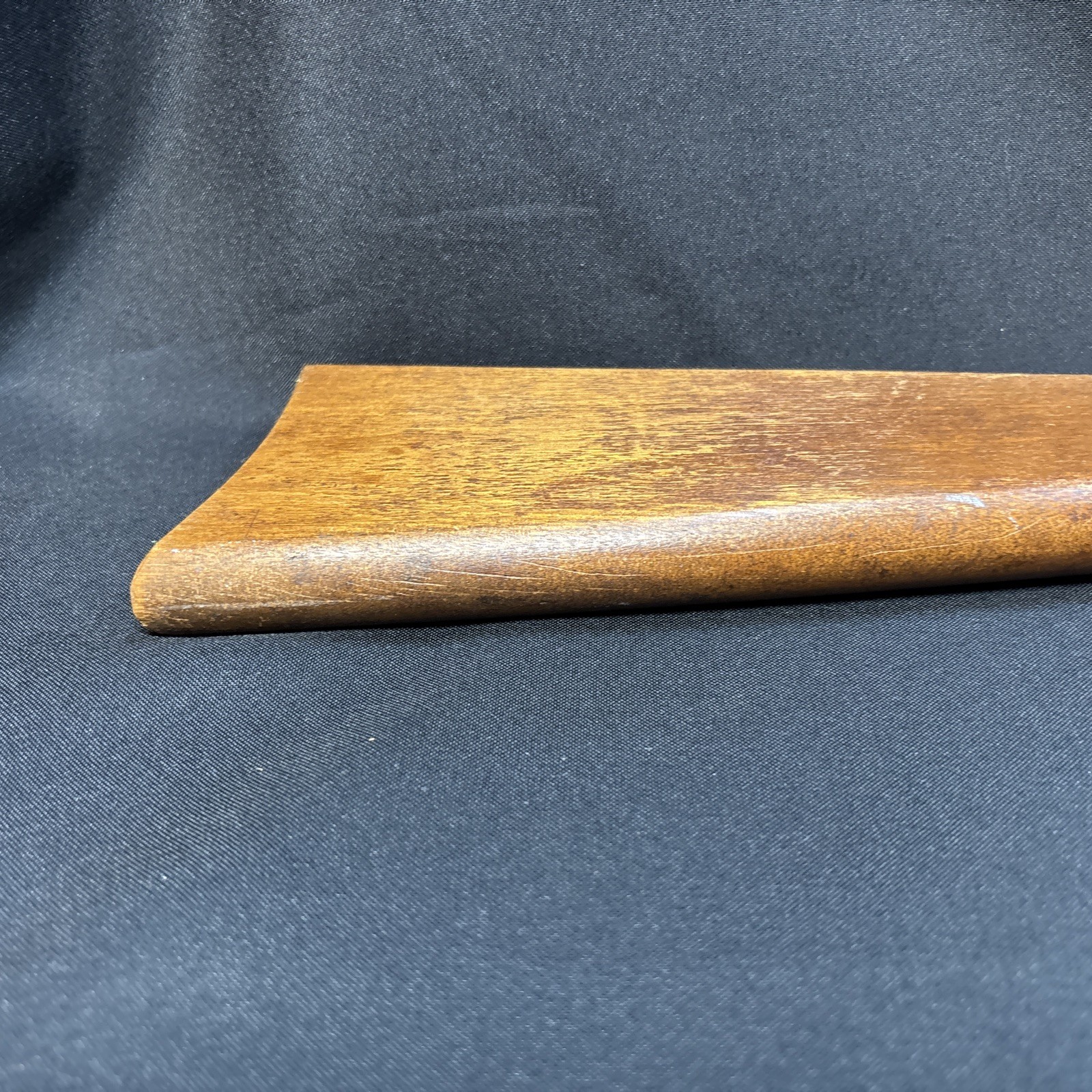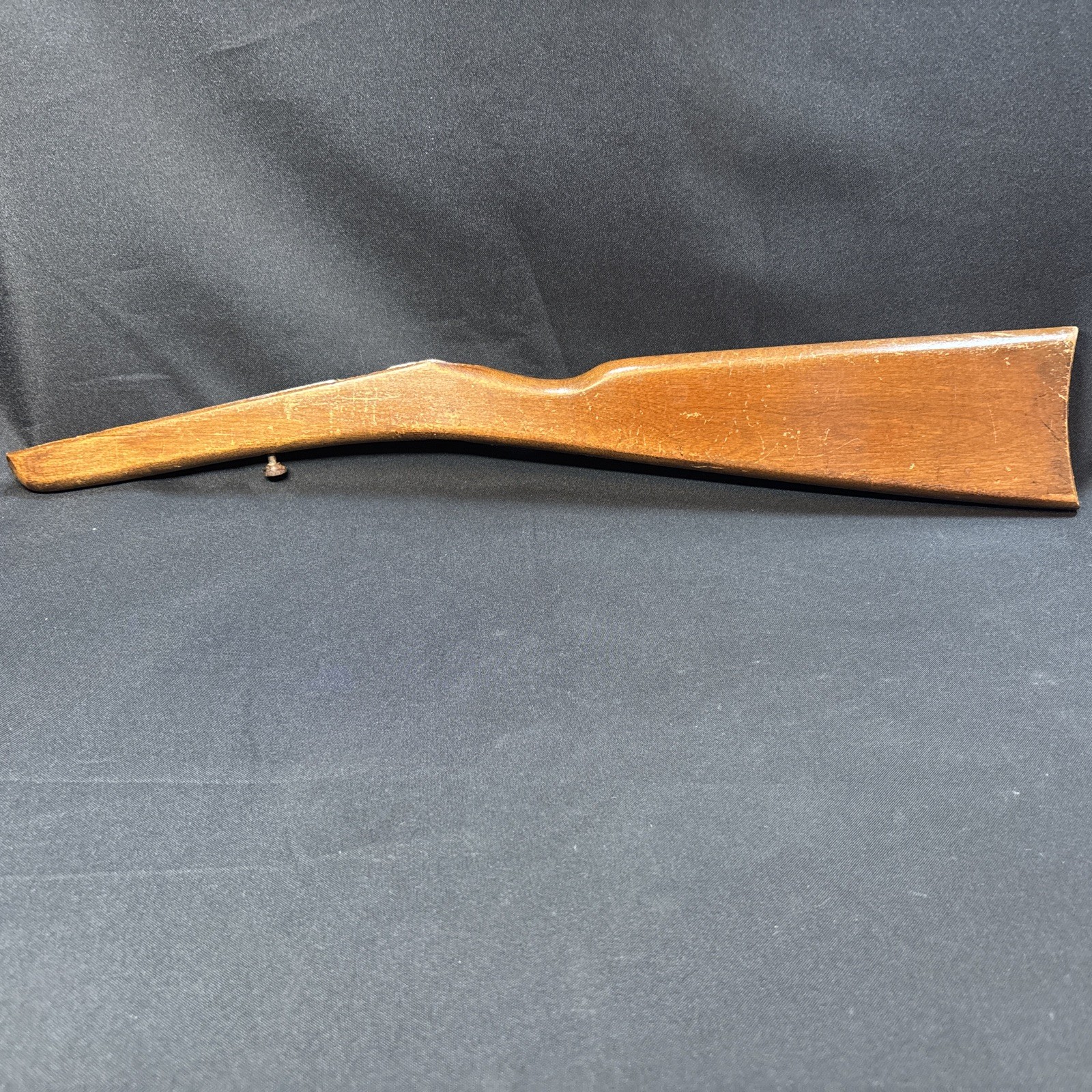 The Vintage Winchester Model 1900 Rifle Stock is a genuine part for a Winchester rifle. Made in the United States, this brown stock is designed specifically for a .22 Long Rifle caliber. It is a classic piece with a Model 1900 designation, perfect for collectors or enthusiasts looking to restore or customize their vintage rifle.