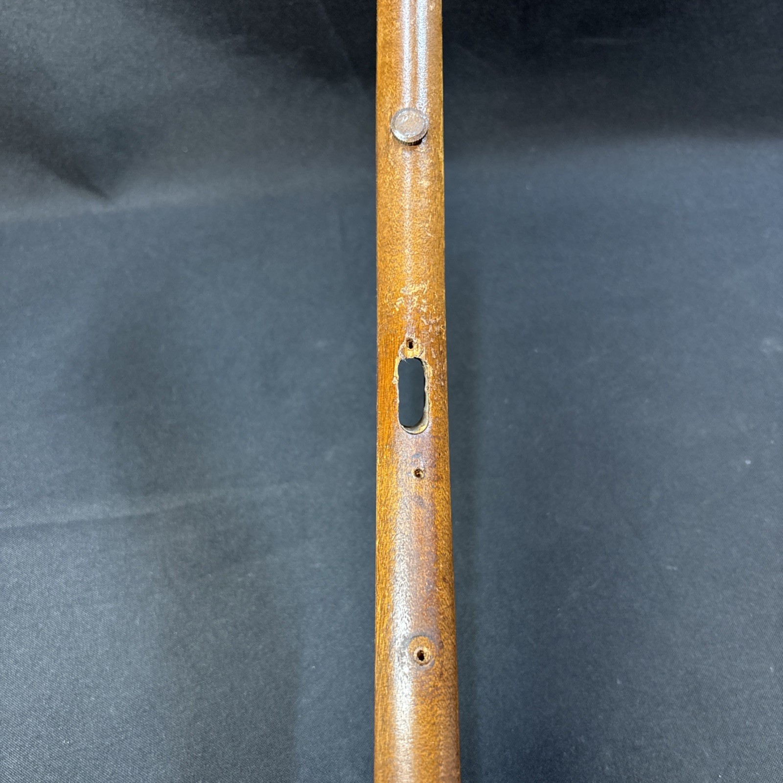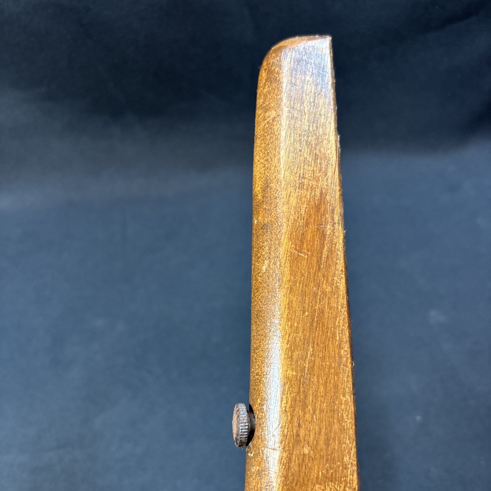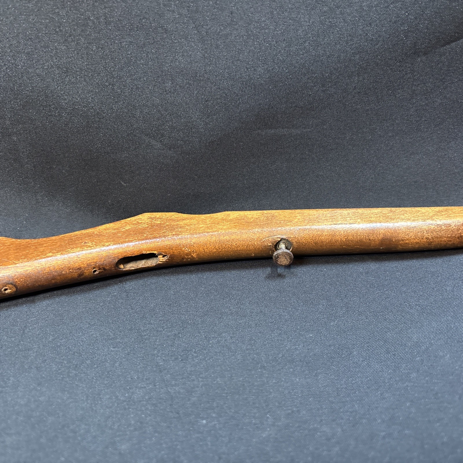 The Vintage Winchester Model 1900 Rifle Stock is a genuine part for a Winchester rifle. Made in the United States, this brown stock is designed specifically for a .22 Long Rifle caliber. It is a classic piece with a Model 1900 designation, perfect for collectors or enthusiasts looking to restore or customize their vintage rifle.