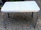 White Formica & Chrome Trim/Legs Vintage Kitchen Table w/ extra leaf built in