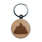 Poop Symbol Emoticon Solid Engraved Wood Round Keychain Tag Charm