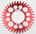 Lightweight CAT5 aluminum sprocket. 100% CNC manufactured in the USA. Specially formulated alloy per Vortex specifications. Available in 4 colors with contrasting silver machine cuts. Unique tooth design increases sprocket longevity. Vortex patented sprocket design is unlike any other sprocket.