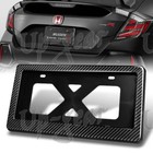 Real Carbon Fiber W-Power Black Front Rear License Plate Frame W/Bracket