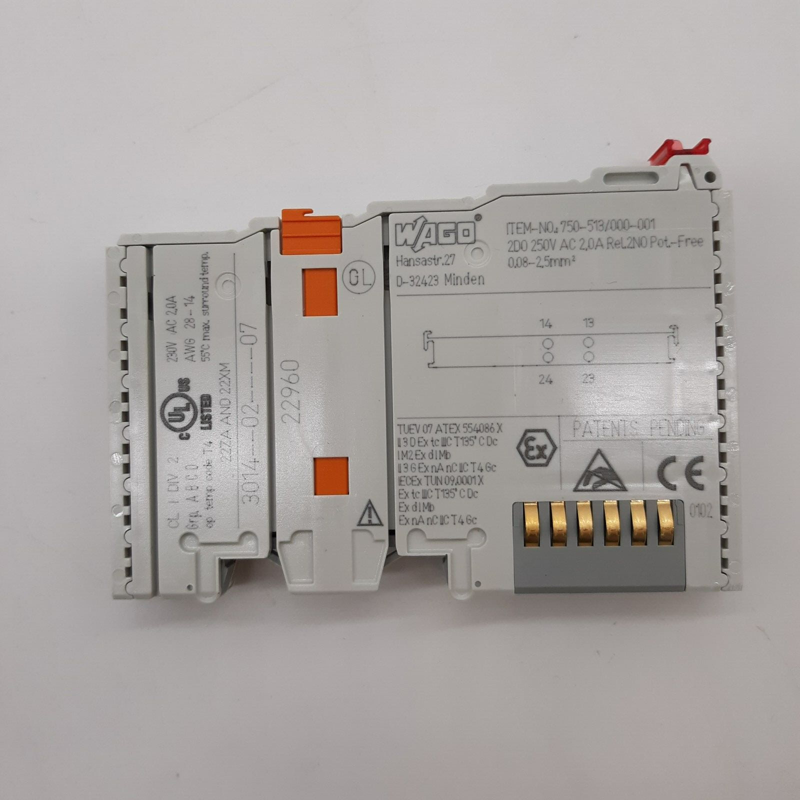 Used WAGO 750-513/000-001 2-Channel Relay Output Module.